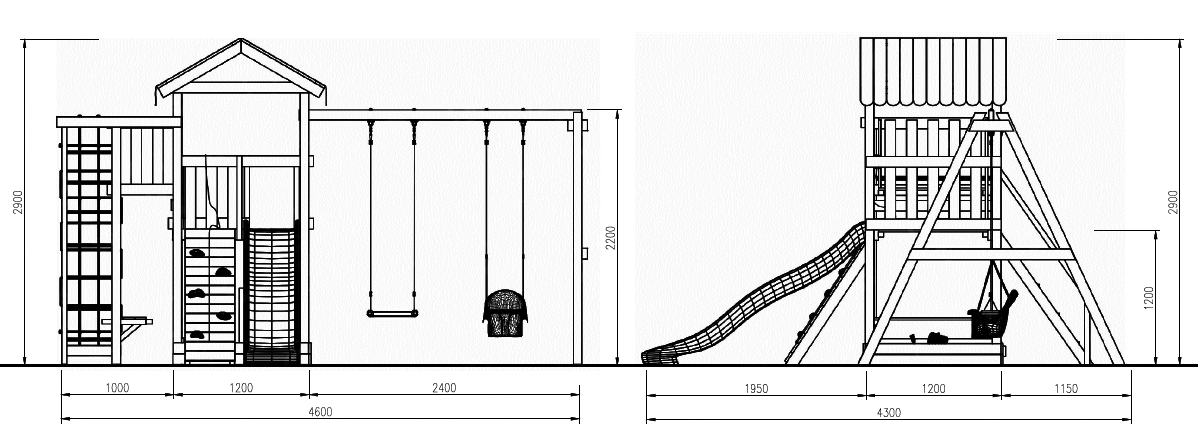 - Габарииты собранного городка: 460 х 430 х 290 см