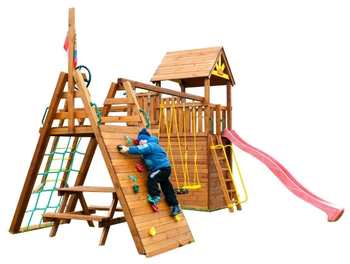 Башня, домик, рукоход, турник, столик для игр, скалодром, капитанский мостик, 3 качельных места и многое другое — спорт и игры для всех!