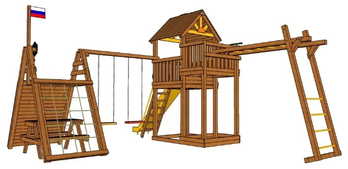 Продуманная вариативность установки рукохода с разных сторон игровой башни, позволяет установить площадку на сложные дачные участки.