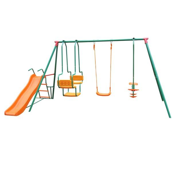 - Состав комплекса — качели, горка, двухместные качели, гондола