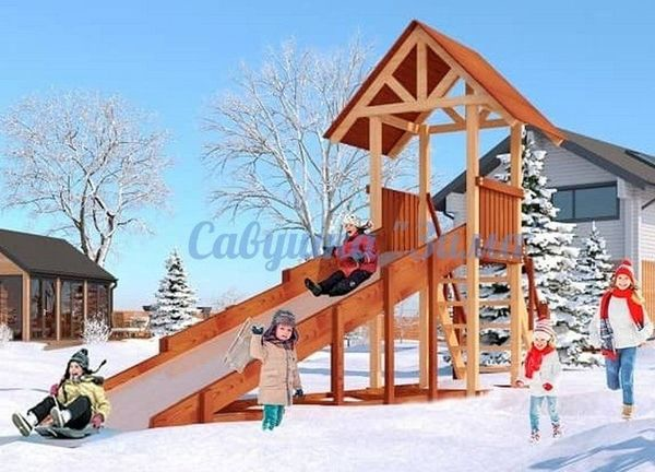 Решились купить зимнюю горку для детской площадки, но переживаете, насколько будет безопасно детишкам на ней кататься? Предлагаем простую и очень надежную модель из серии Савушка. Идеальная двухфазовая шлифовка исключает любые заусенцы — доски безупречно гладкие, а концы и края перил специально закруглены — никаких болезненных травм даже при падении.
