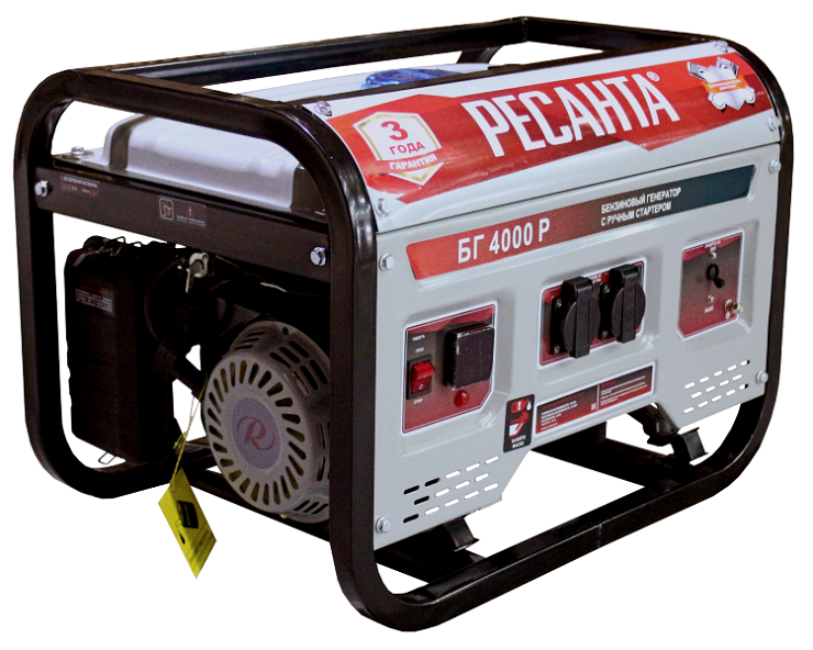 Электрогенератор Ресанта БГ 4000 Р предназначен для автономного электроснабжения потребителей бытового назначения. Электрогенератор бензиновый однофазный, выходная мощность 3000 Вт, выходное напряжение 220 Вольт. В качестве первичного двигателя используется карбюраторный двигатель, топливом для которого является неэтилированный бензин.