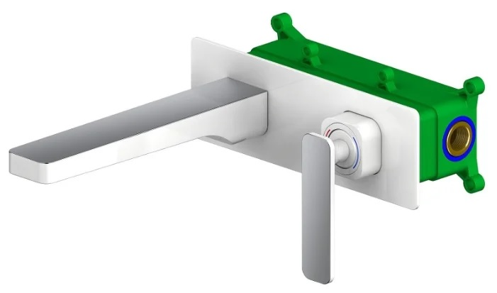 Скрытый монтаж подразумевает врезку самого блока в стену, в борт ванны или раковины. Снаружи остаются только органы управления и излив/выдвижной ручной душ.
