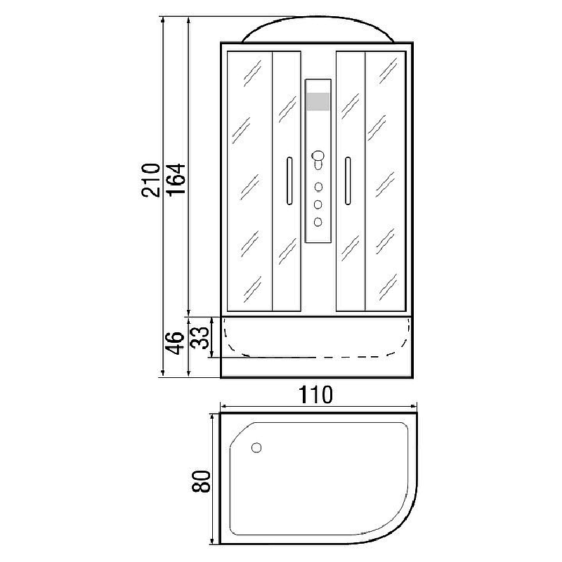 Характеристики душевой кабины River NARA 110/80/44 МТ L