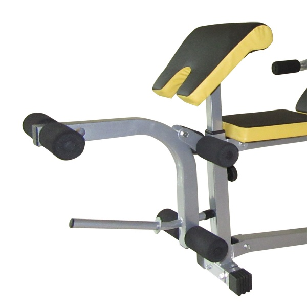 Рычаги блока для ног снабжены мягкими валиками. Есть 2 места для хранения дисков.