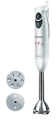 В комплекте три сменных ножа из высококачественной нержавеющей стали: нож измельчитель, нож для смешивания и нож для взбивания. Они позволяют блендеру выполнять функции сразу трех приборов – миксера, погружного блендера и измельчителя. Ножи легко заменяются с помощью специального ключа и плотно прикручиваются к насадке.