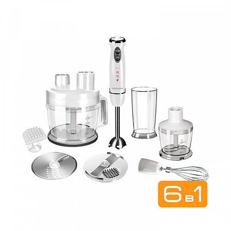 Блендер REDMOND RHB-2957 серии ECOLOGY –мощный универсальный прибор «6 в 1» для приготовления пищи. Модель RHB-2957 имеет расширенную комплектацию сменных насадок и совмещает в себе возможности сразу нескольких кухонных устройств: