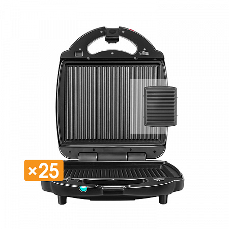 Вместе с RMB-M717/1 вы получите комплект сменных панелей для готовки на гриле. Размер одной панели 290х220х12 мм. Готовить в них можно практически без масла – благодаря антипригарному покрытию блюда не подгорают и не содержат канцерогенов, в отличие от продуктов, жаренных в сковороде в большом количества масла.
