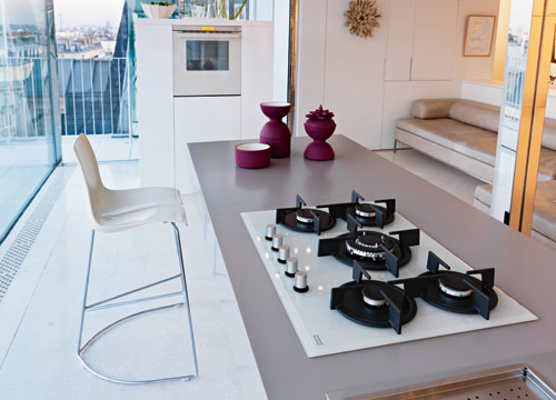 Варочная поверхность, на которой установлены горелки, и которая покрыта слоем стеклокерамики либо закаленного стекла, называется "газ на стекле". Панель легко чистится, но ее легко поцарапать.