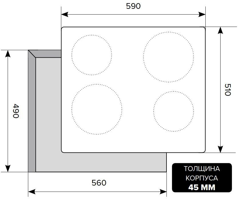 - Цвет панели конфорок — белый