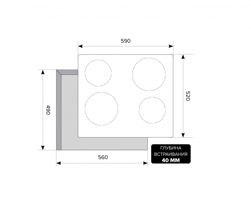 - Цвет панели конфорок — черный