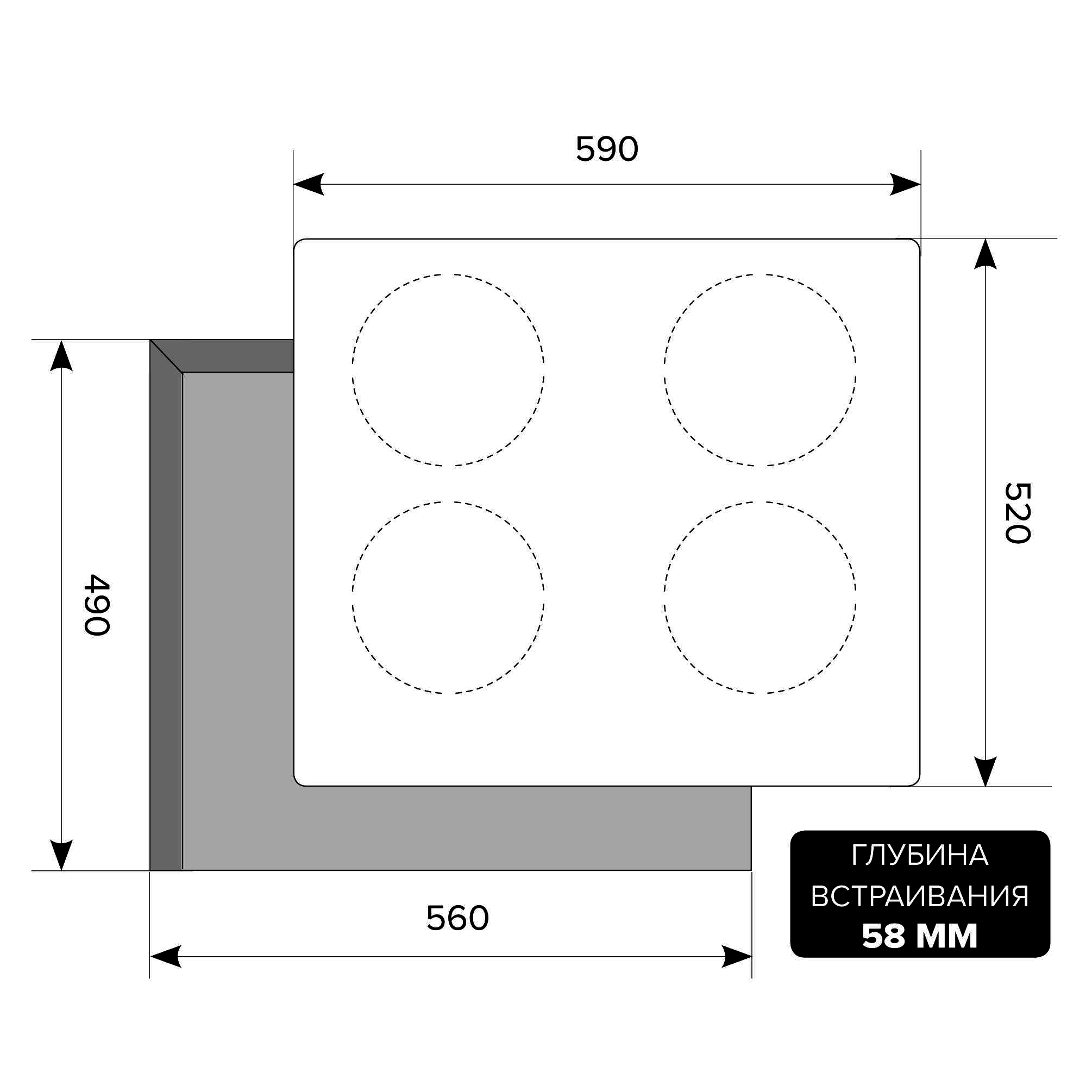 - Ширина для встраивания, см — 55,5