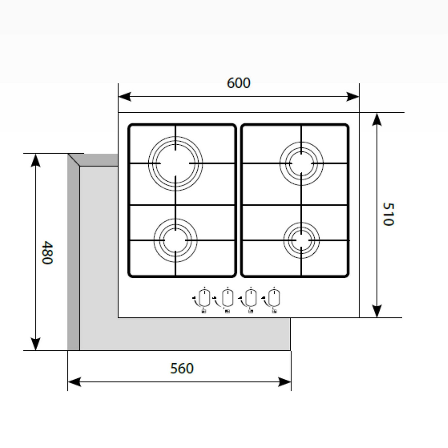 - Всего конфорок — 4