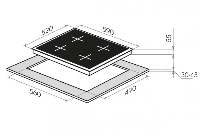 - Ширина для встраивания, см — 56